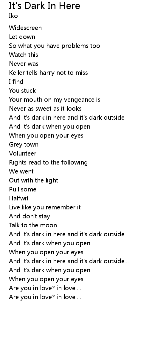 And it's dark in here and it's dark outside |