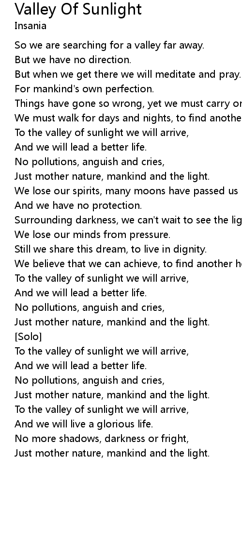 To the valley of sunlight we will arrive, |