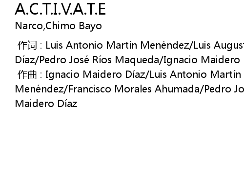 | [00:00.000] | 作曲 : Ignacio Maidero Díaz/Luis Antonio Martín Menéndez/Francisco Morales Ahumada/Pedro José Ríos Maqueda/Luis Augusto Maidero Díaz |