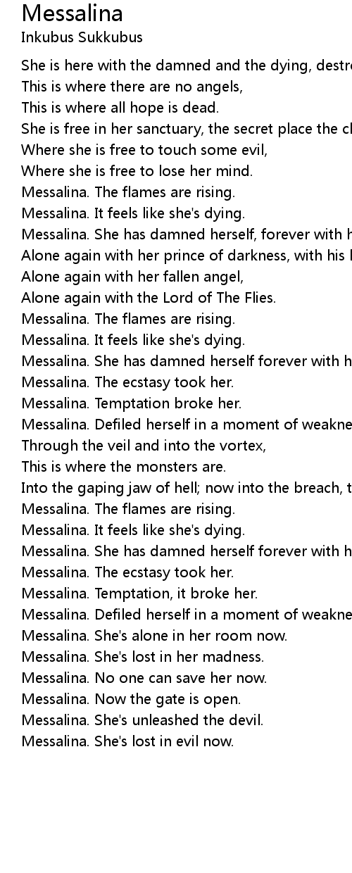Messalina. It feels like she's dying. |