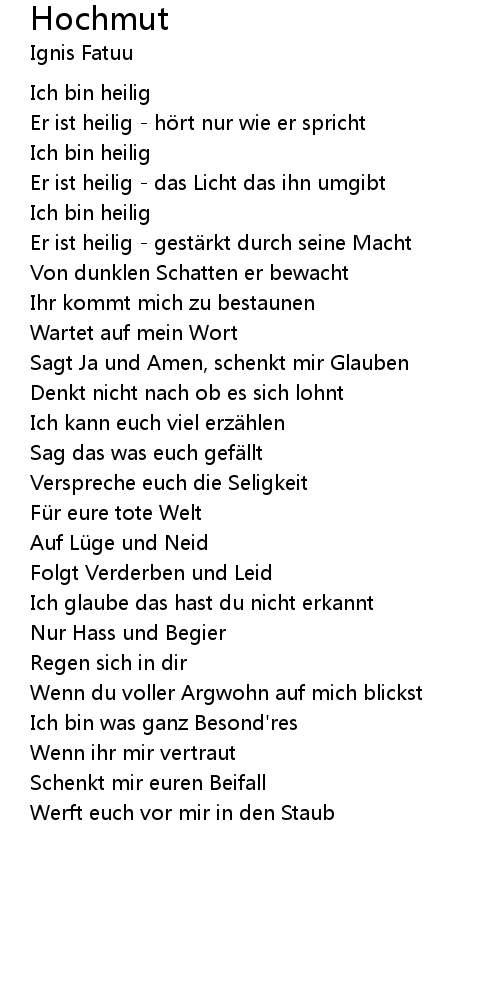 | Song | Hochmut |