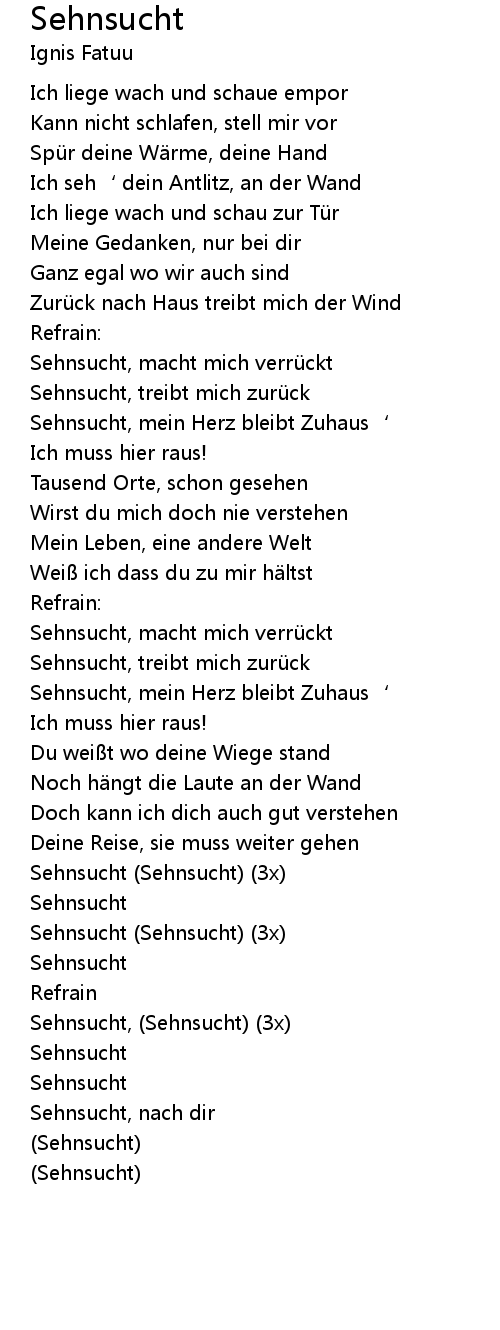 | Sehnsucht, (Sehnsucht) (3x) | |