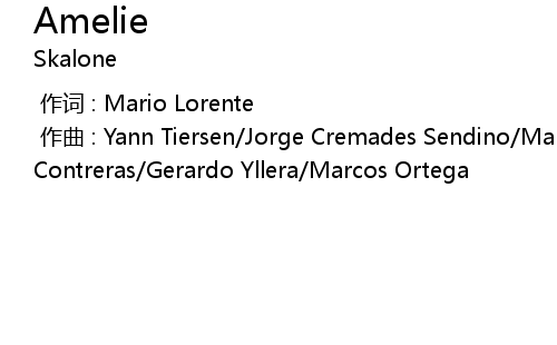 | [00:00.000] | 作曲 : Yann Tiersen/Jorge Cremades Sendino/Mario Lorente/Franco Contreras/Gerardo Yllera/Marcos Ortega |