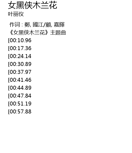 | [00:08.55] | 《女黑侠木兰花》主题曲 |