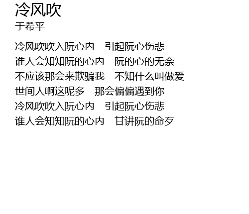 | 冷风吹吹入阮心内 引起阮心伤悲 | |