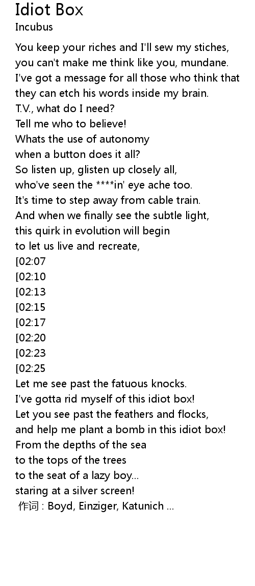 | [00:00.00] | 作词 : Boyd, Einziger, Katunich ... |