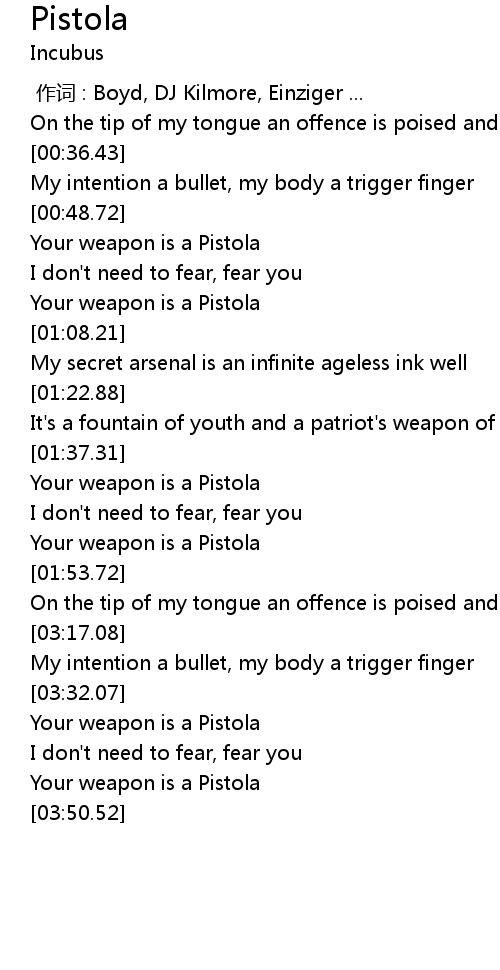 | [00:40.33] | My intention a bullet, my body a trigger finger |