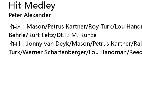 | [00:00.000] | 作词 : Mason/Petrus Kartner/Roy Turk/Lou Handman/Reed/Günther Behrle/Kurt Feltz/Dt.T.: M. Kunze |