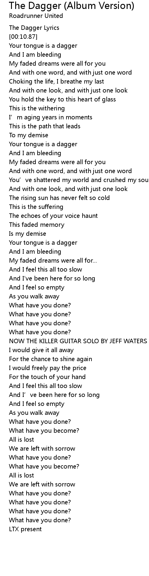 | [00:04.50] | The Dagger Lyrics |