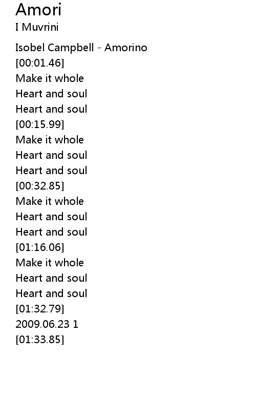 | [01:23.77] | Heart and soul |