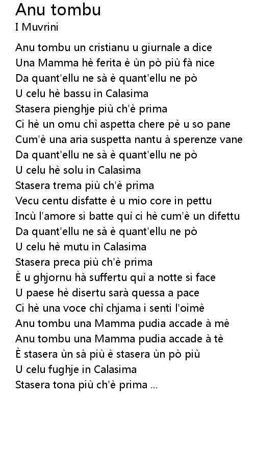 | Anu tombu una Mamma pudia accade à mè | |
