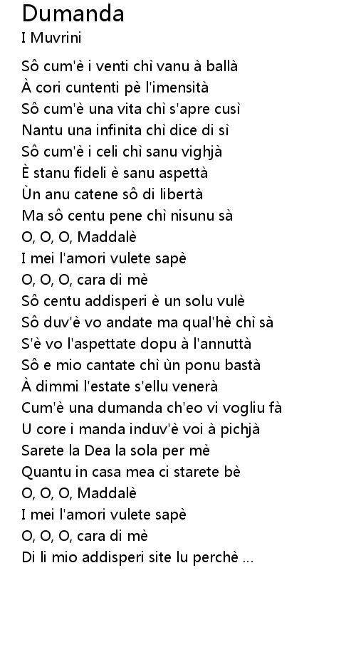 | Cum'è una dumanda ch'eo vi vogliu fà | |