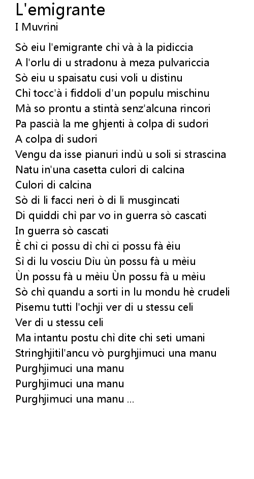 | Sò eiu l' emigrante chì và à la pidiccia | |