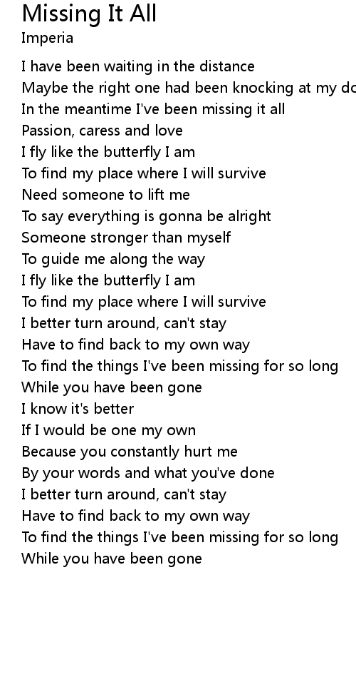 In the meantime I've been missing it all |