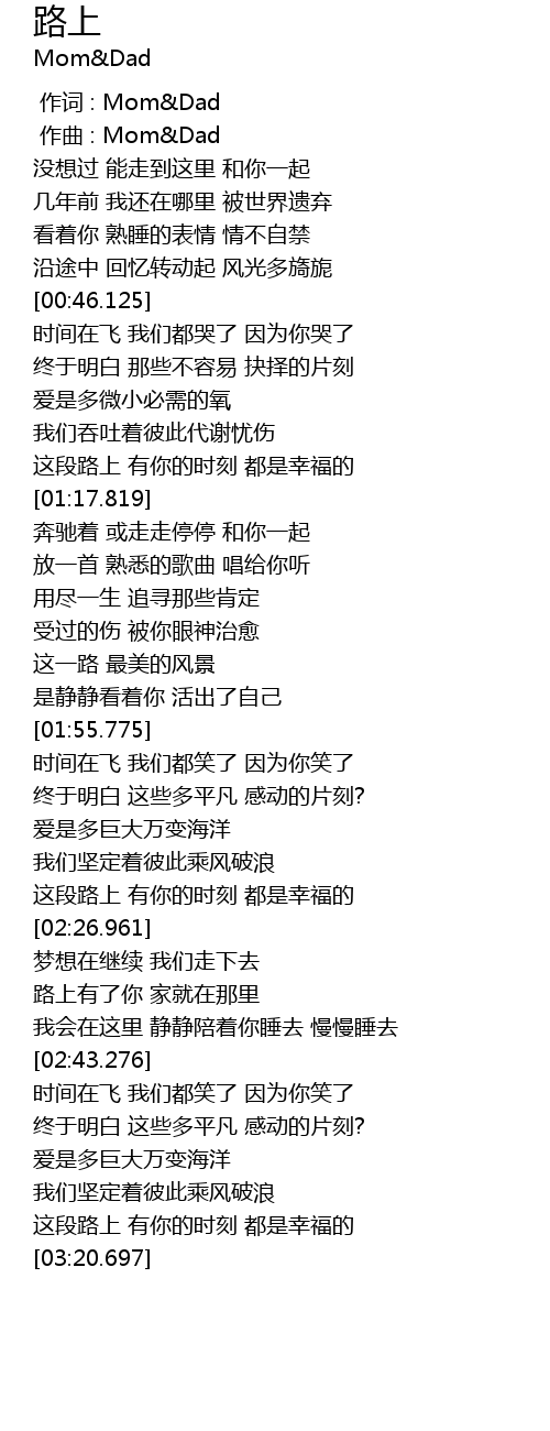 | [00:00.000] | 作词 : Mom&Dad |