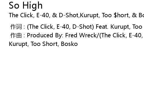 | [00:00.000] | 作词 : (The Click, E-40, D-Shot) Feat. Kurupt, Too Short, Bosko |