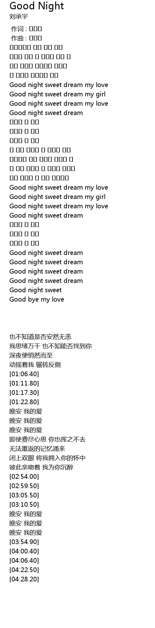 | [03:54.90] | Good night sweet dream |