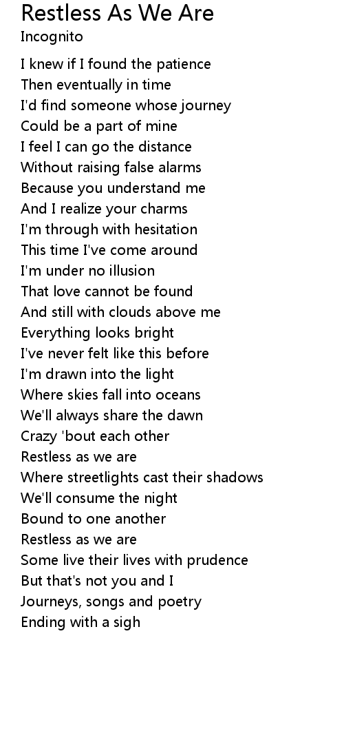 | Restless as we are | |