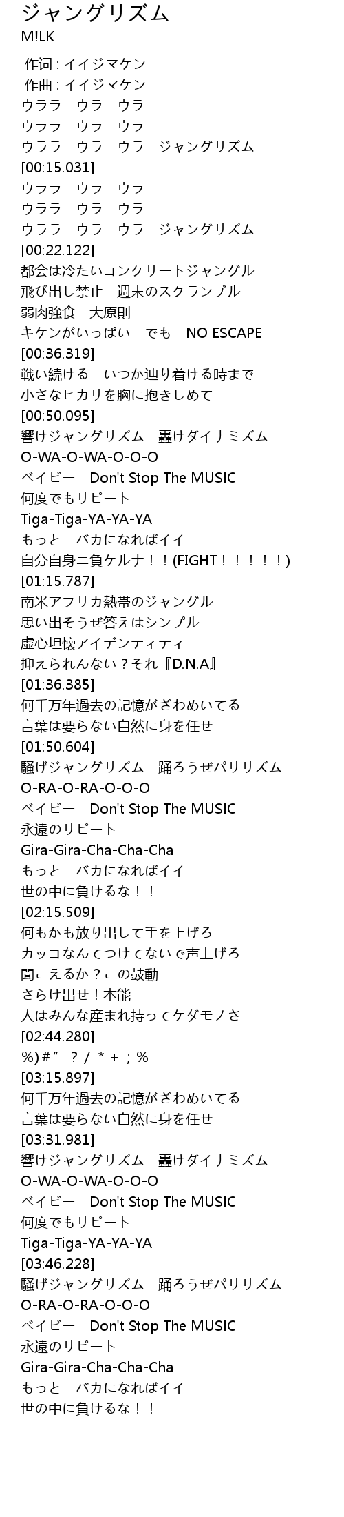 | [03:33.027] | 響けジャングリズム 轟けダイナミズム |