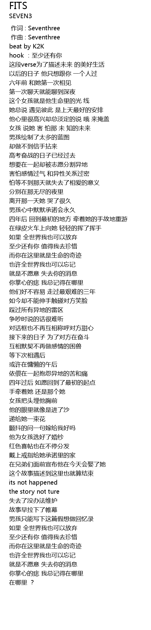 | [00:09.685] | hook : zhì shǎo hái yǒu nǐ |