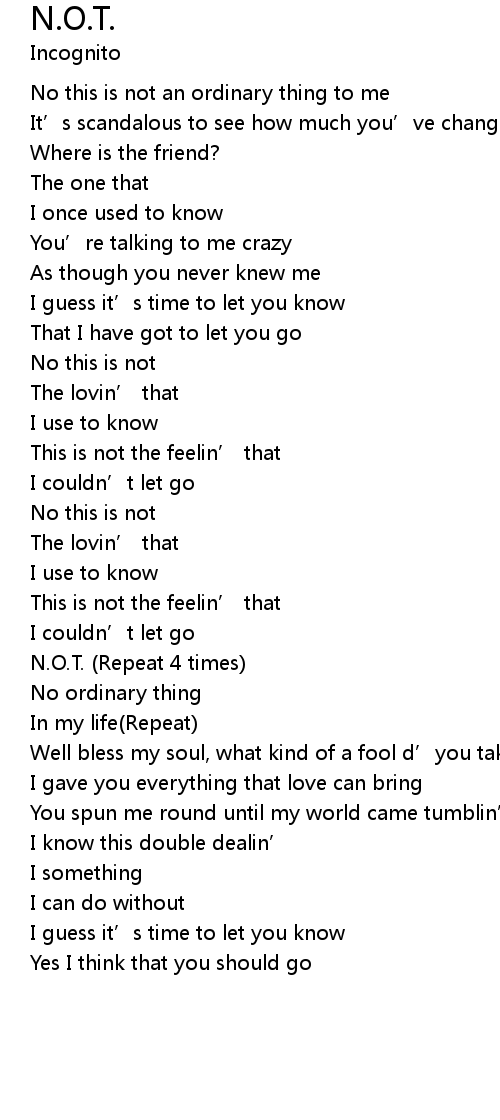 | N.O.T. (Repeat 4 times) | |