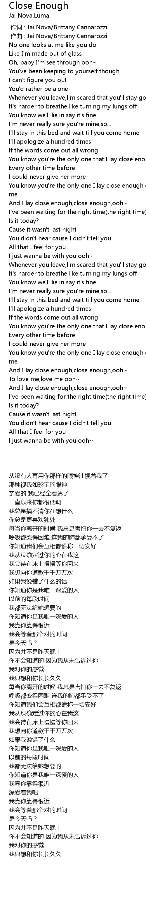 | [02:24.18] | And I lay close enough,close enough,ooh~ |
