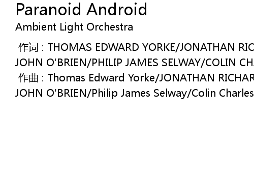 | [00:00.000] | zuo qu : Thomas Edward Yorke JONATHAN RICHARD GUY GREENWOOD EDWARD JOHN O' BRIEN Philip James Selway Colin Charles Greenwood |