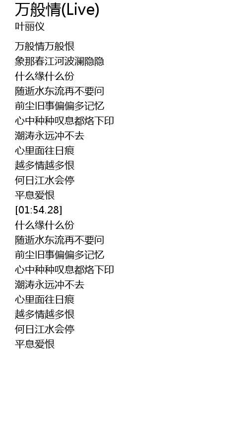 | [00:27.34] | wàn bān qíng wàn bān hèn |
