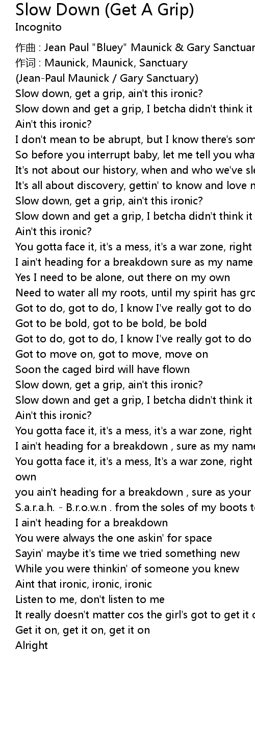 | Slow down and get a grip, I betcha didn' t think it would come to this | |