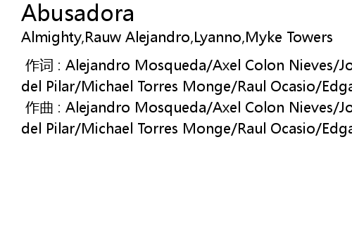 | [00:00.000] | 作词 : Alejandro Mosqueda/Axel Colon Nieves/Jose Polanco/Eduardo del Pilar/Michael Torres Monge/Raul Ocasio/Edgardo Cuevas/Michael Yun |