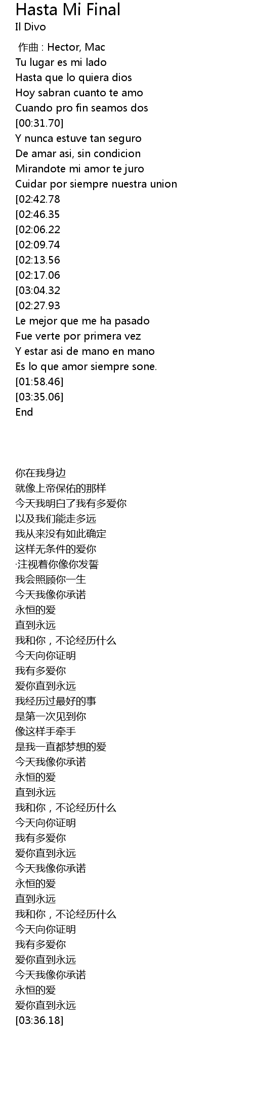 | [03:19.16][03:04.32][02:20.75][01:22.58] | Amamdote hasta mi final |