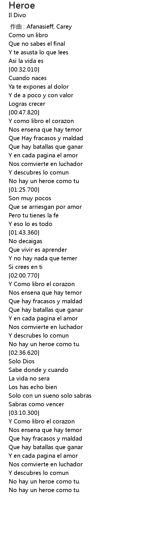 | [02:30.220] | No hay un heroe como tu. |