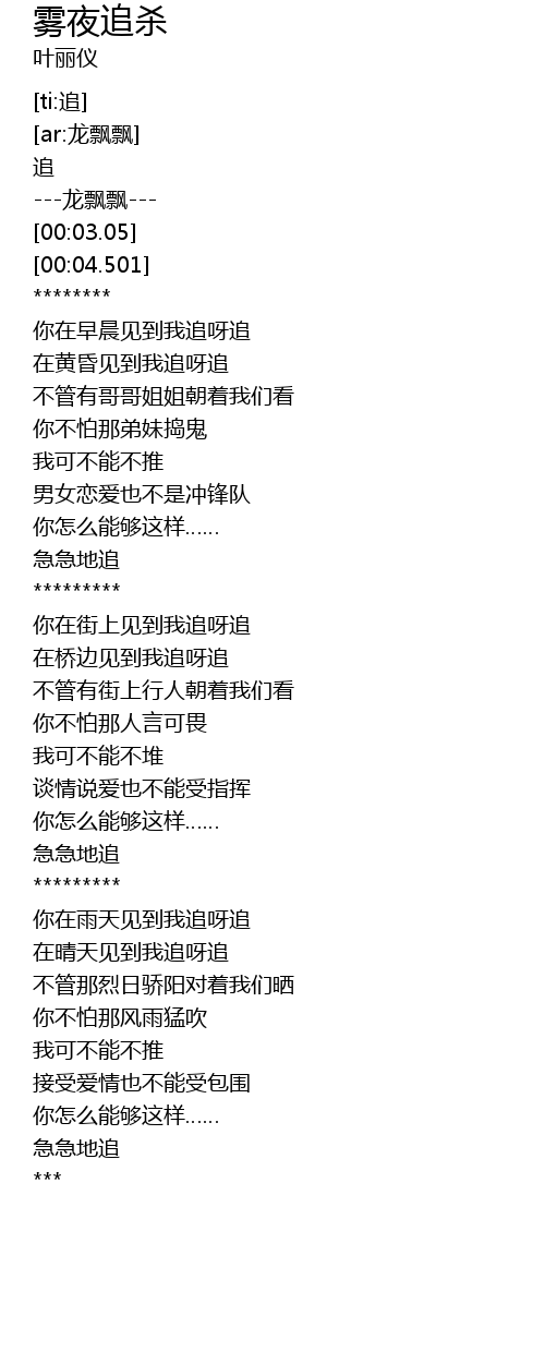 | [02:38.324] | 急急地追 |