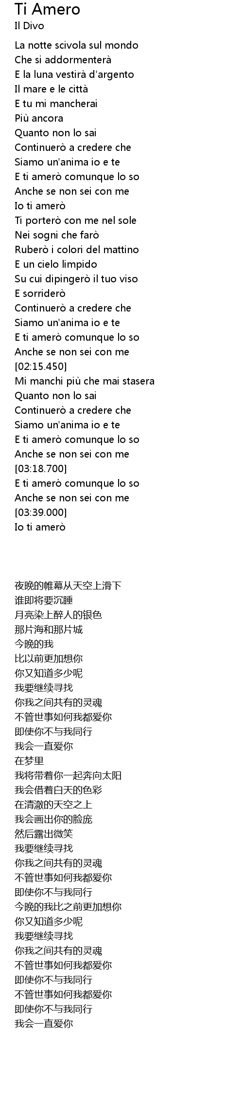 | [03:02.150] | E ti amero comunque lo so |
