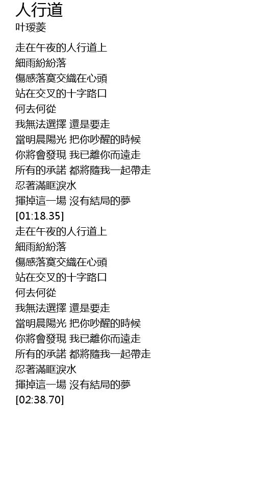 | [01:42.54] | 走在午夜的人行道上 |