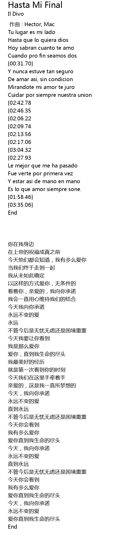 | [03:19.16][03:04.32][02:20.75][01:22.58] | Amamdote hasta mi final |