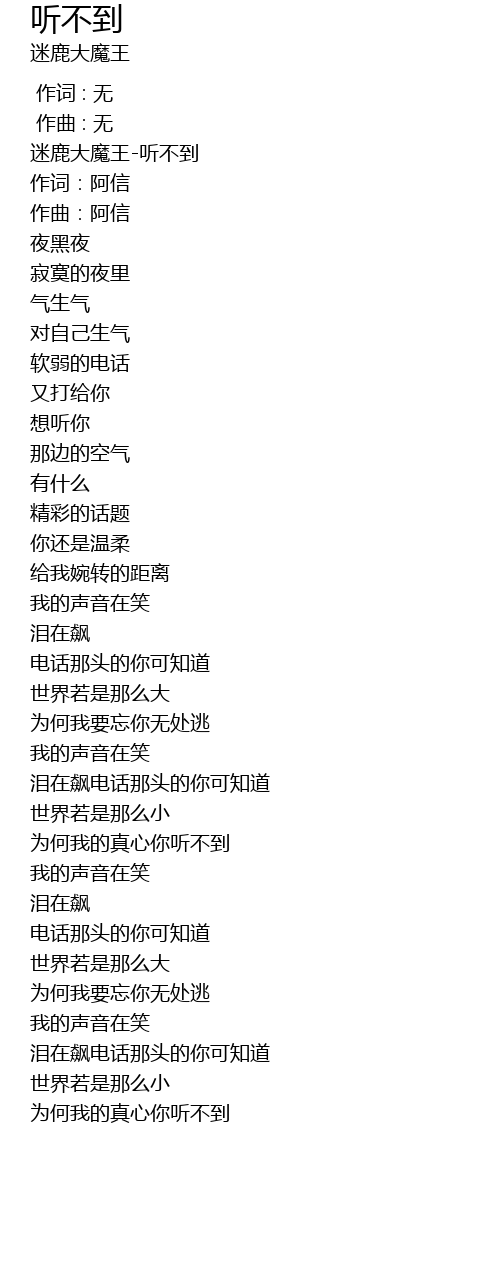 | [00:00.00] | 迷鹿大魔王-听不到 |