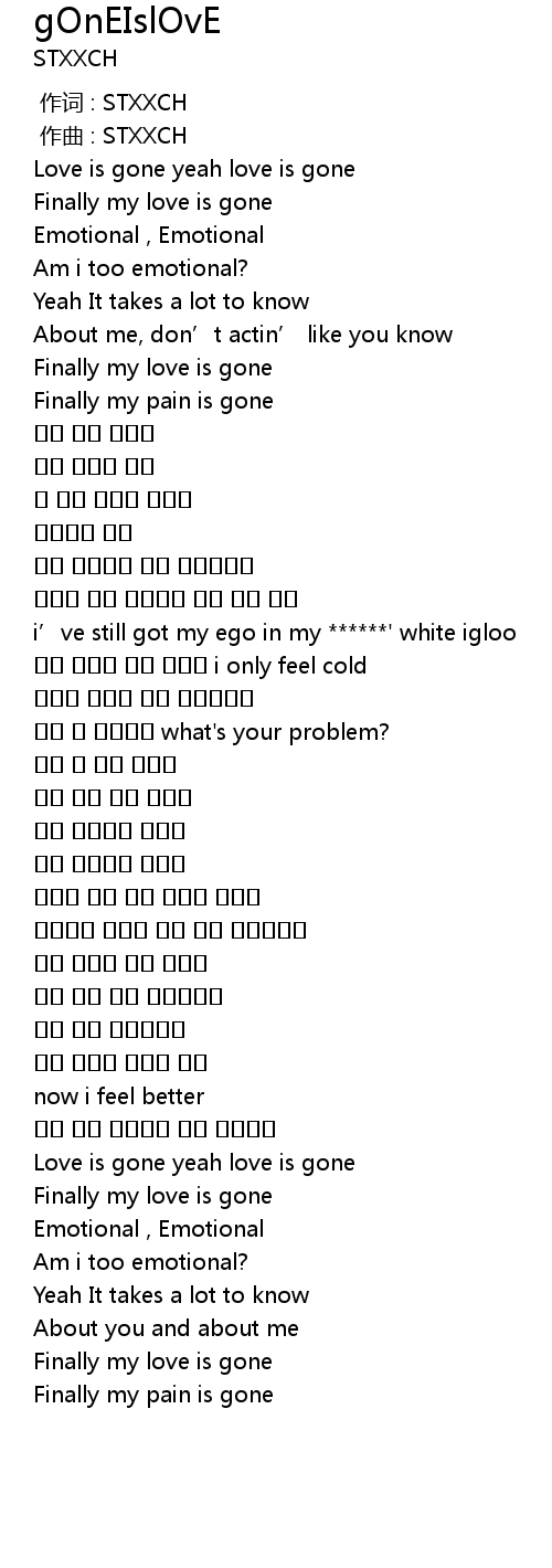 | [01:02.767] | i’ve still got my ego in my ******' white igloo |