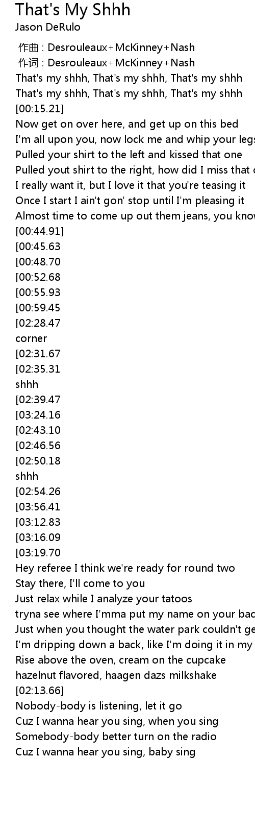 | [00:08.56] | That's my shhh, That's my shhh, That's my shhh |
