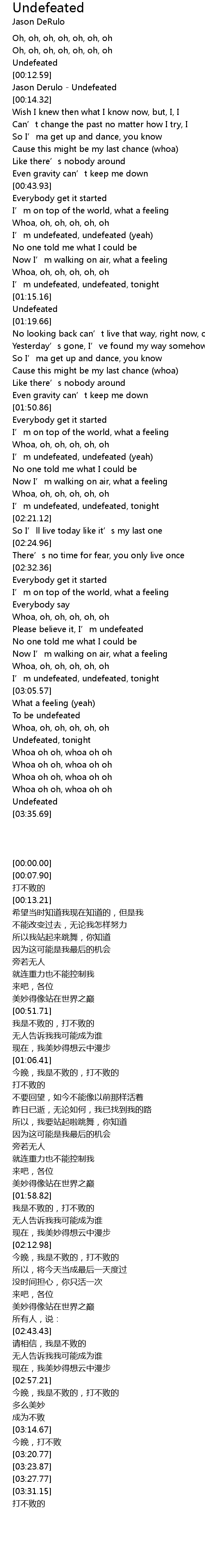 | [00:55.38] | I' m undefeated, undefeated yeah |