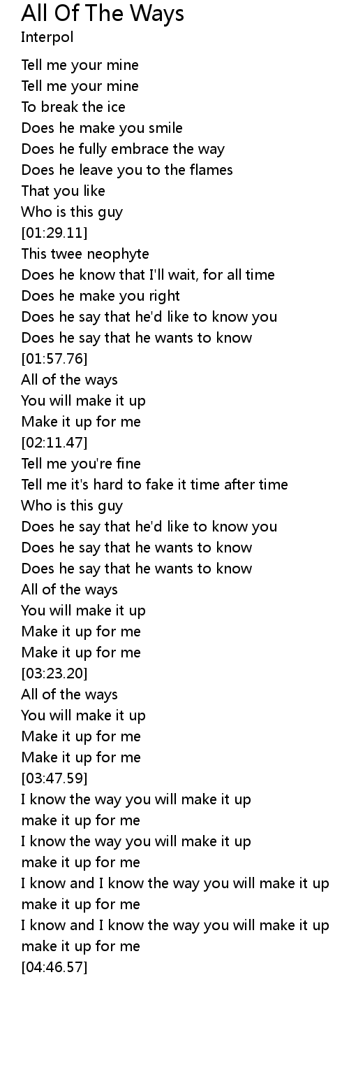 | [02:32.45] | Tell me it's hard to fake it time after time |