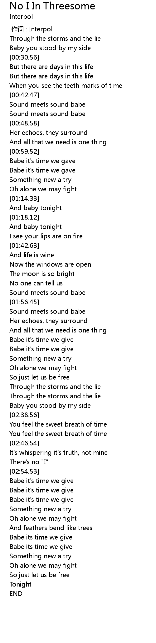 | [00:00.00] | 作词 : Interpol |