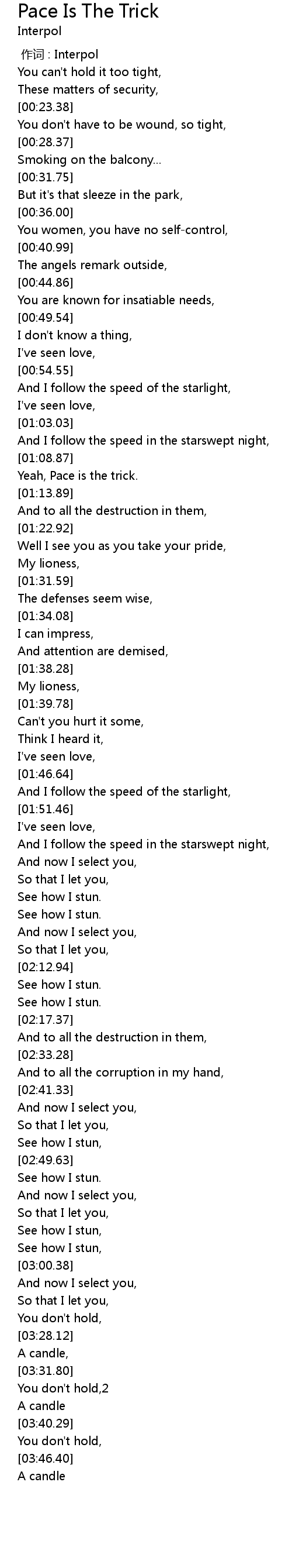 | [00:00.00] | 作词 : Interpol |