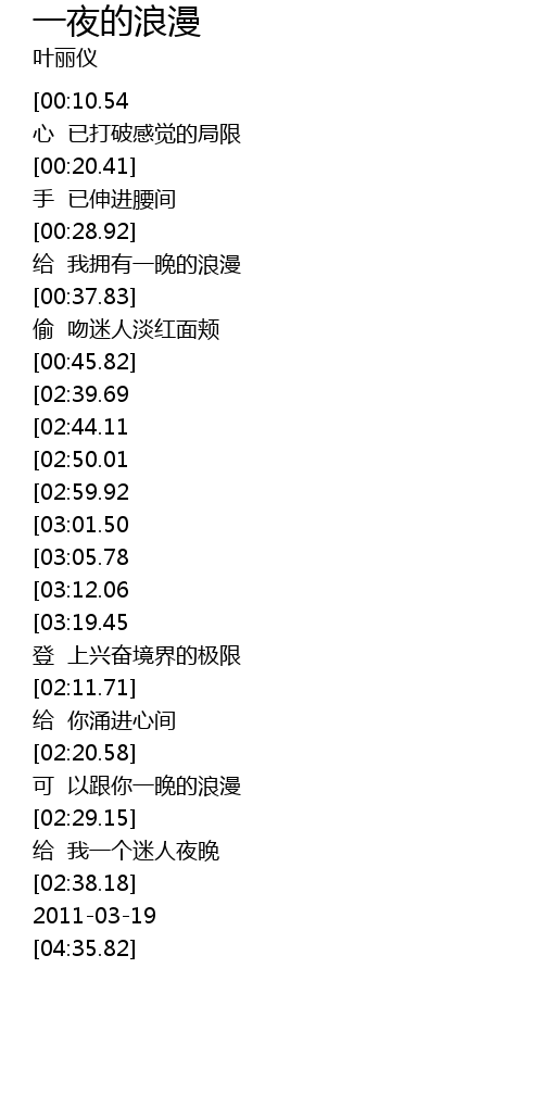 | [03:25.38][02:44.11][00:52.54] | 留给我记忆温馨一夜 |