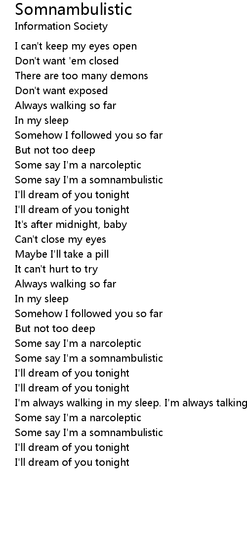 I'm always walking in my sleep. I'm always talking in my sleep... |