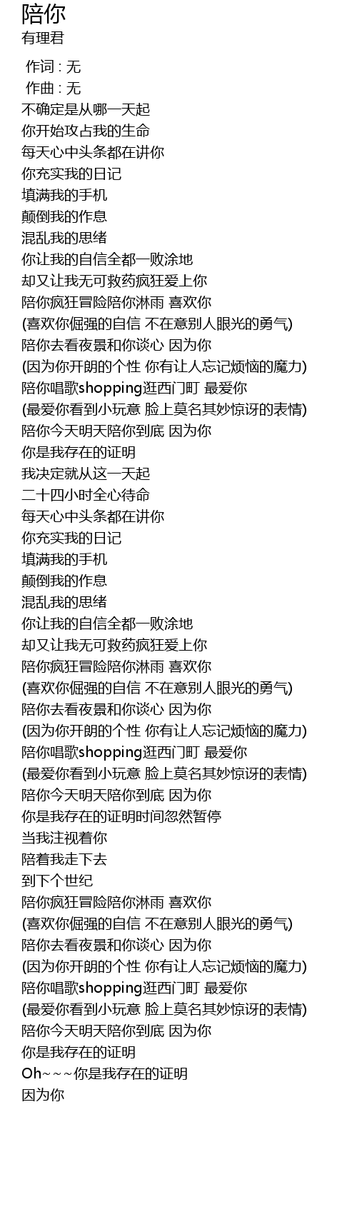 | [03:50.792] | Oh~~~你是我存在的证明 |