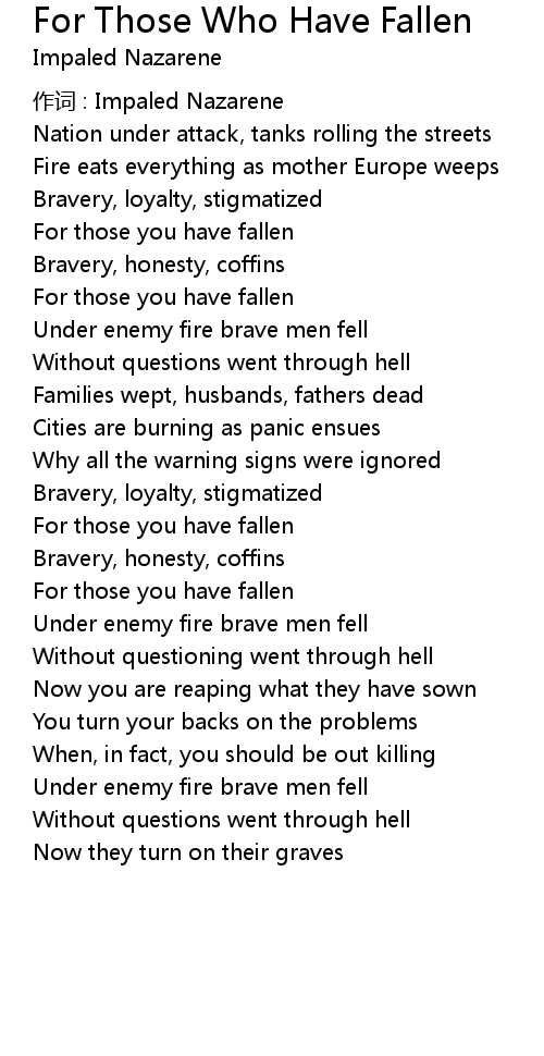 | Song | For Those Who Have Fallen |