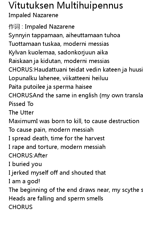| CHORUS:Haudattuani teidat vedin kateen ja huusin etta olen jumala! | |