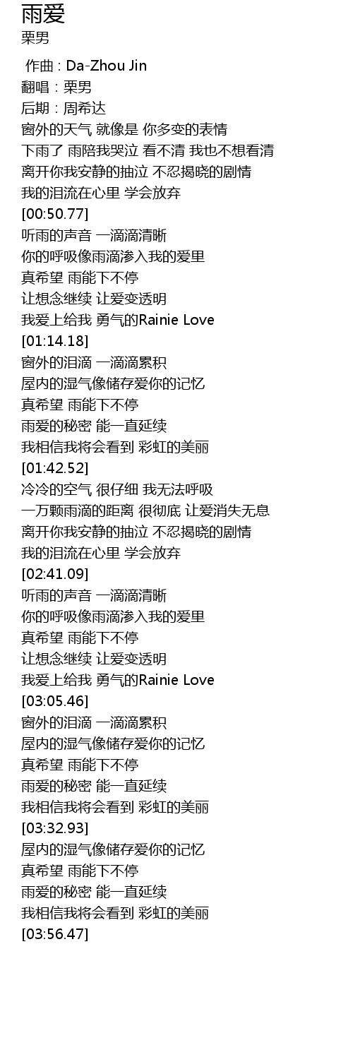 | [03:18.29] | 雨爱的秘密 能一直延续 |
