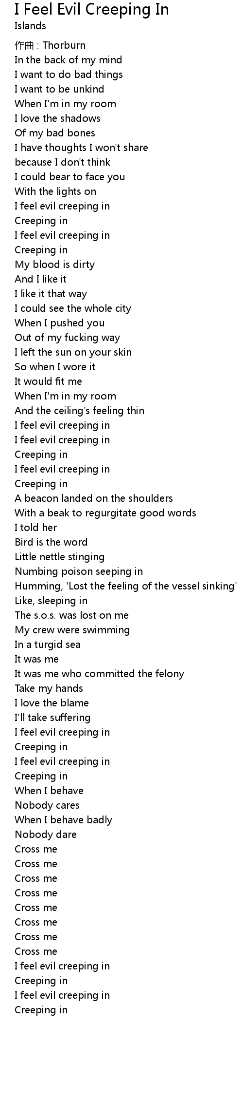 | I feel evil creeping in | |